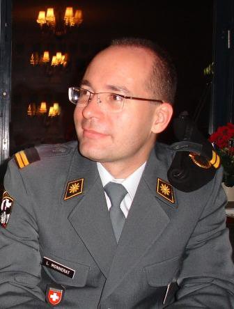 Je travaille pour l'Etat-major de conduite de l'armée suisse, dans la planification des opérations, depuis septembre 2003. J'ai initialement été chargé de développer la partie doctrinale de l'étude conceptuelle « Information Operations » et ensuite de mettre en œuvre la composante « conduite de l'information opérationnelle » dans le cadre des opérations d'information, en parallèle à d'autres responsabilités. Auparavant, j'ai travaillé régulièrement pour l'armée depuis 1999, notamment en réalisant ponctuellement des études - toutes classifiées - dans le cadre de la réforme Armée XXI au profit de l'Etat-major général et de l'Office fédéral des armes de combat. Par ailleurs, j'ai eu la chance de participer à l'opération « SUMA » de l'armée suisse, et j'ai été déployé sur l'île de Sumatra entre février et mars 2005 dans le contingent chargé de fournir une aide humanitaire aux populations touchées par le tsunami. J'occupe aujourd'hui une fonction de cadre au sein du J5.